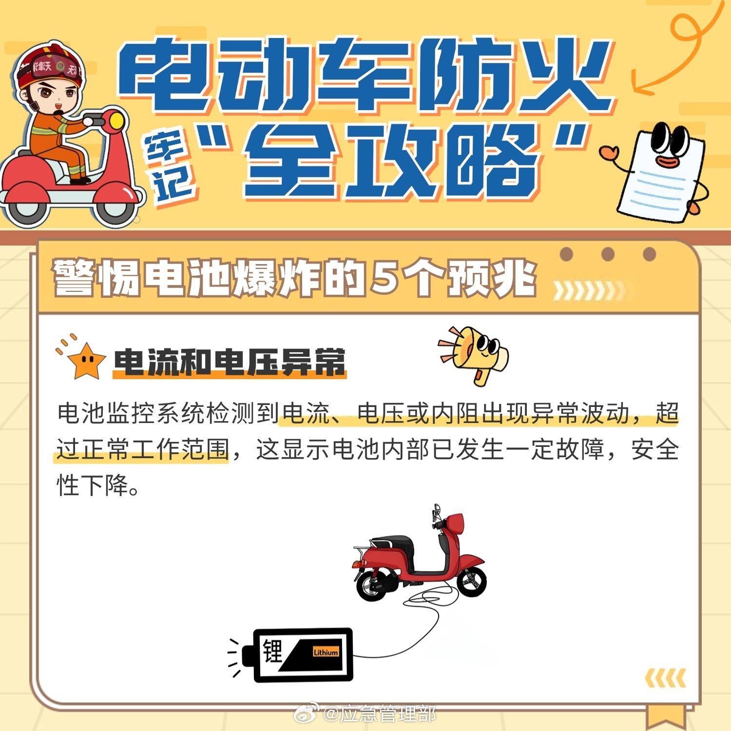 电池发热、电池变形、电解液泄漏、散发出刺激性气味、电流和电压异常……电池出现这五种情况可得小心!此外,使用电动车还要注意哪些事项?一起了解↓↓